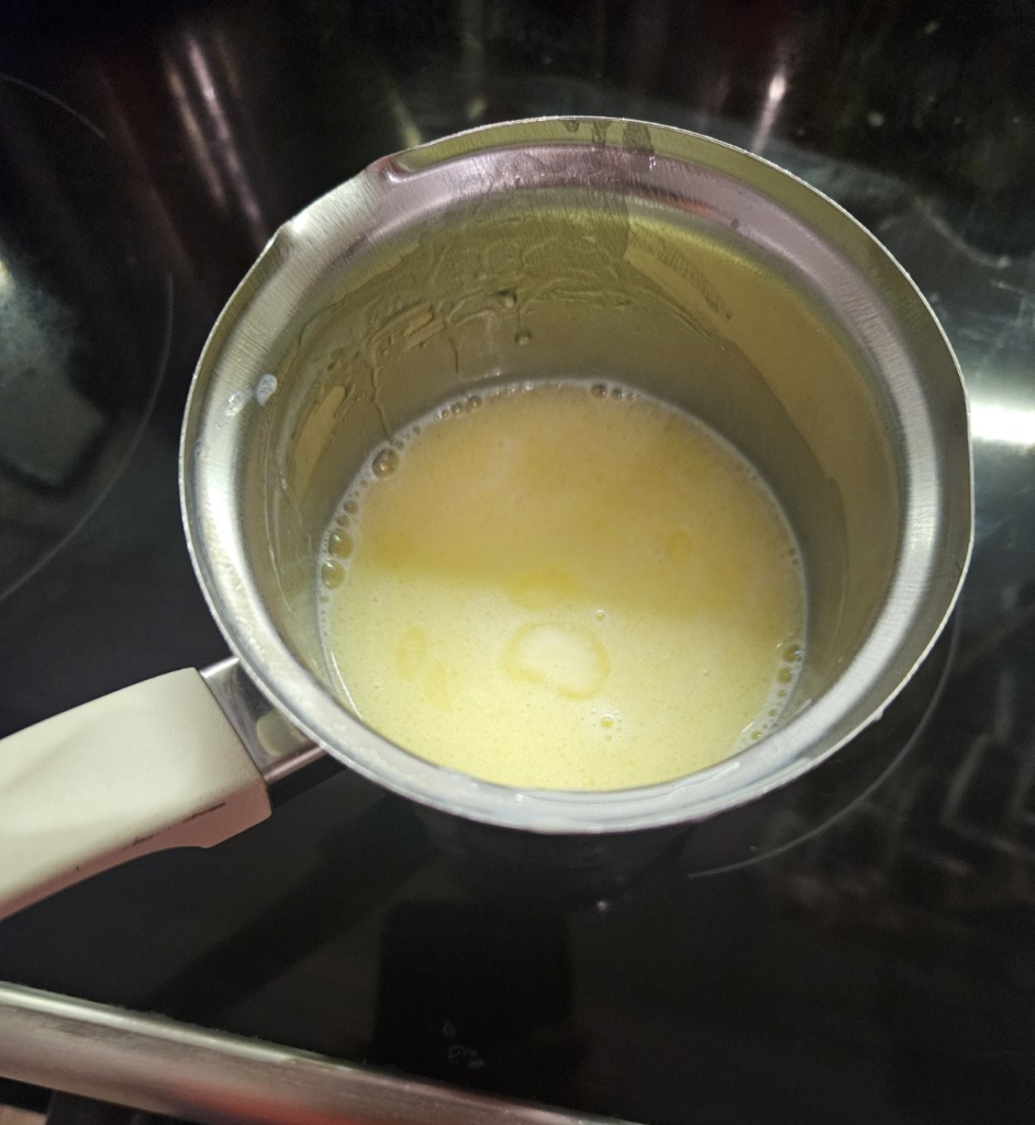 Prvo na laganoj vatri u šerpici ili džezvi topimo puter u mleku.