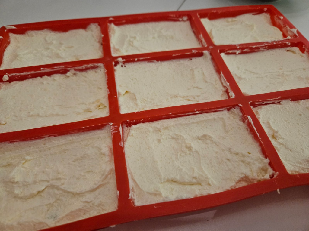 Silikonski kalup se pokazao kao odlično rešenje, parčići se vrlo lako vade, a i nema bojazni od metalnog ukusa!