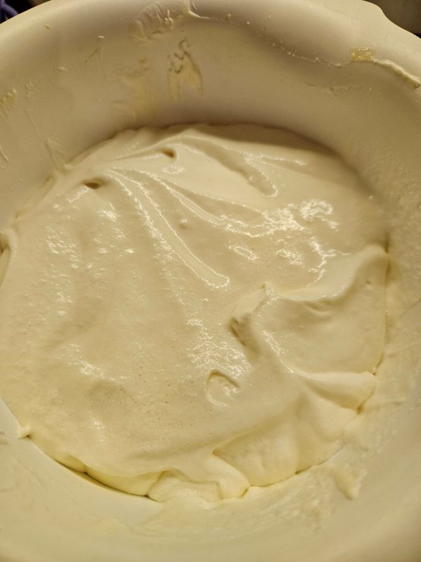 Sada špatulom, malo po malo, dodajemo bleanca u smesu žumanaca, šećera i sira maskarpone. Ovo nećemo mutiti mikserom već rukom, kako masa ne bi spala.